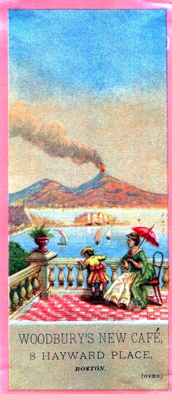 • USA Massachusetts Boston Trade Card Woodburys New Cafe 1880 Front