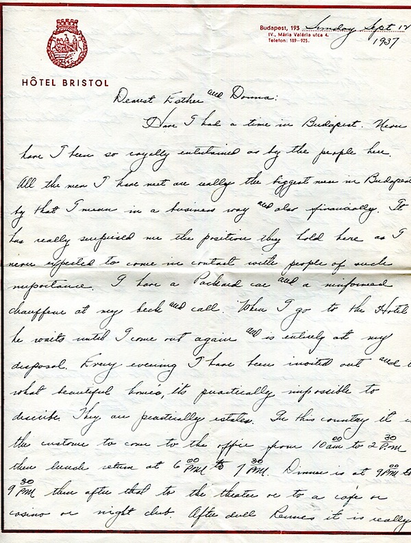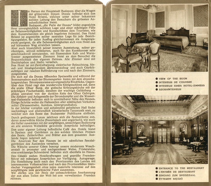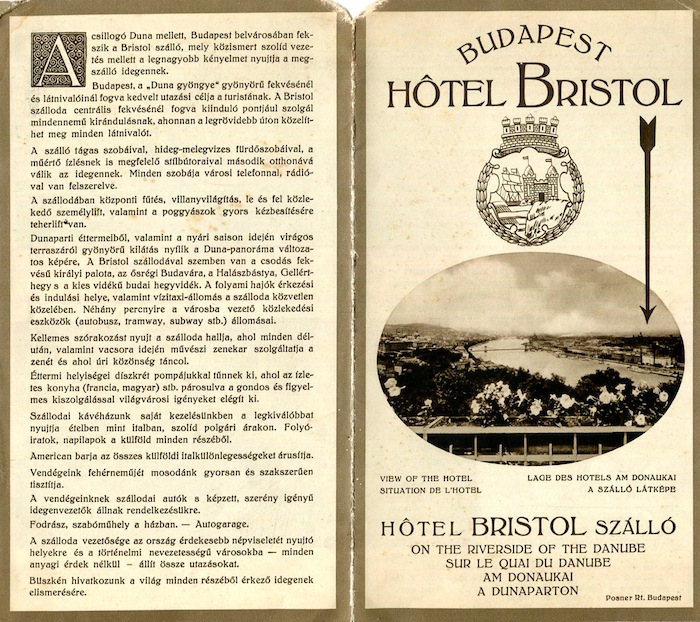 Hungary Budapest Hotel Bristol Leaflet 1930 Front