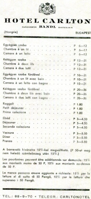 Hungary Budapest Hotel Carlton Leaflet 1935 Back