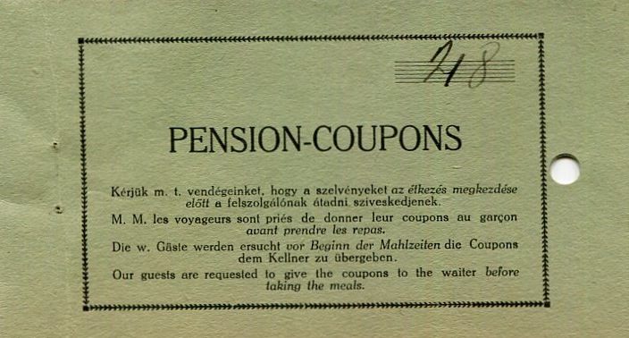 Hungary Budapest Hotel Jägerhorn Meal Coupon Book 1935