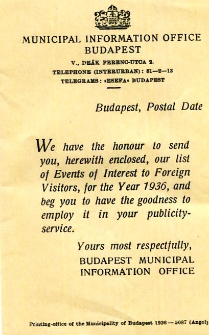 Hungary Budapest Leaflet 1936