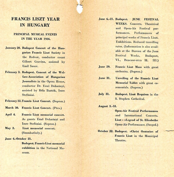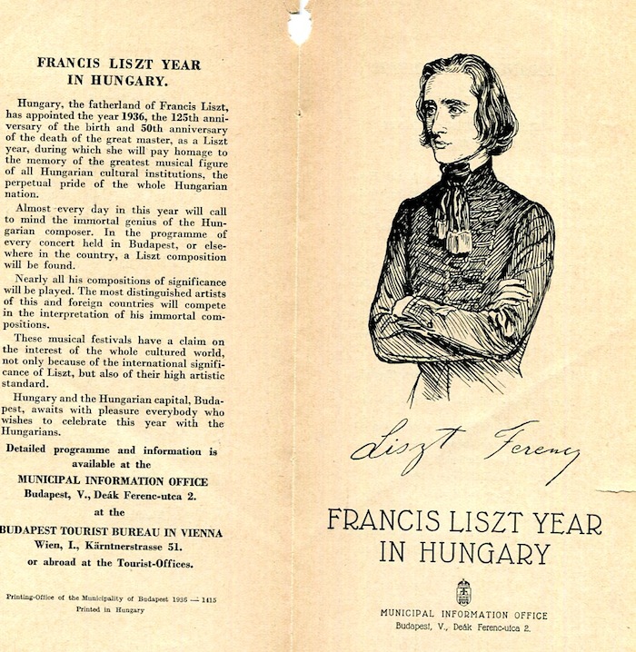 Hungary Budapest Leaflet Franz Liszt Year 1936 Front