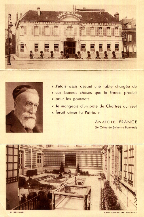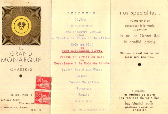 France Chartres Hotel Le Grand Monarque Menu 1936 Front