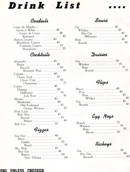 USA Illinois Chicago Drink Menu Club Caliente 1940 Inside 1