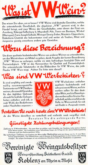 Germany Coblenz Commerce Vereinigte Weinsgutsbesitzer Brochure Wine Merchant 1932 Front