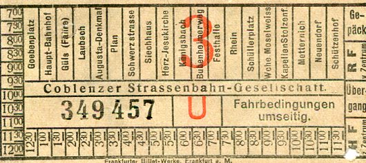 Germany Coblenz Tram Ticket 1927