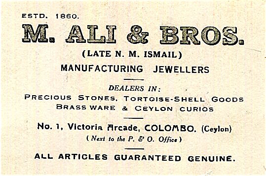 Ceylon Colombo Commerce A Ali And Bros Jewellers Business Card 1936