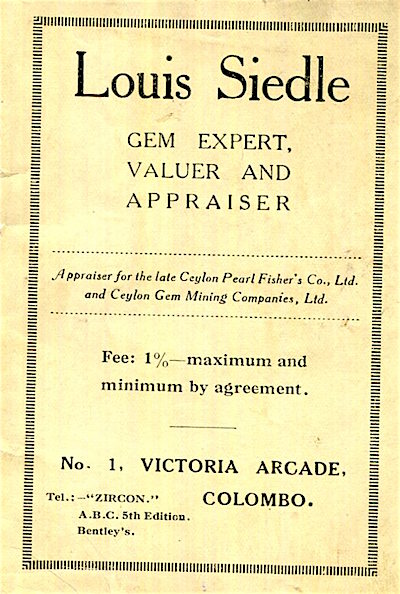 Ceylon Colombo Commerce Louis Siedle Gems Brochure 1925 Front