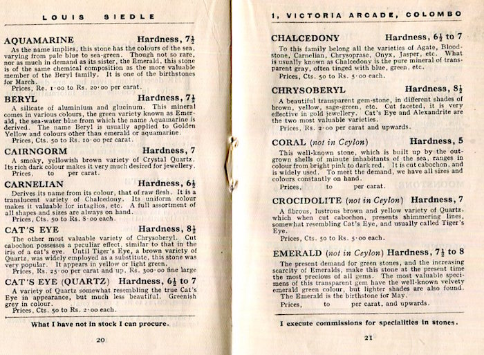Ceylon Colombo Commerce Louis Siedle Gems Brochure 1925 Inside