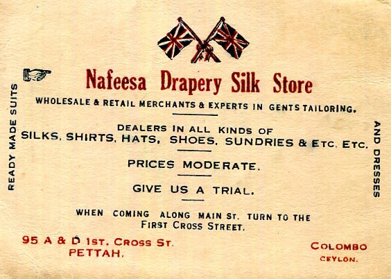 Ceylon Colombo Commerce Nafeesa Drapery Silk Store Business Card 1920