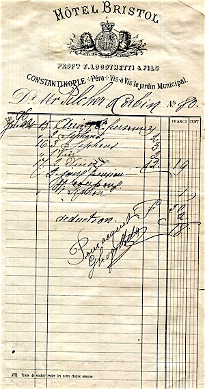 Turkey Constantinople Hotel Bristol Receipt 1896