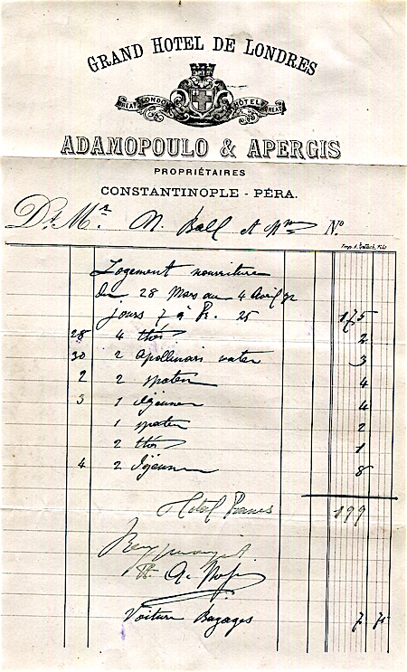 Turkey Constantinople Hotel Pera Palace Receipt Orient Express 1902