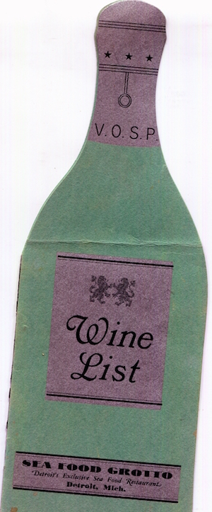 USA Michigan Detroit Wine List Sea Food Grotto 1930 Front