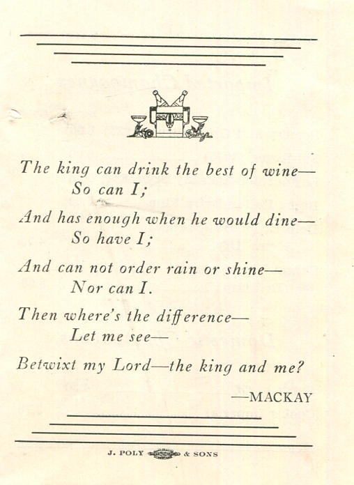 USA Michigan Detroit Wine List Sea Food Grotto 1930 Inside 5