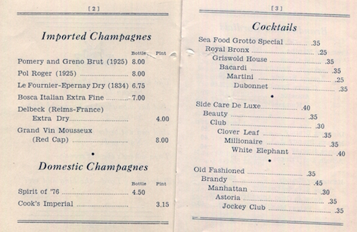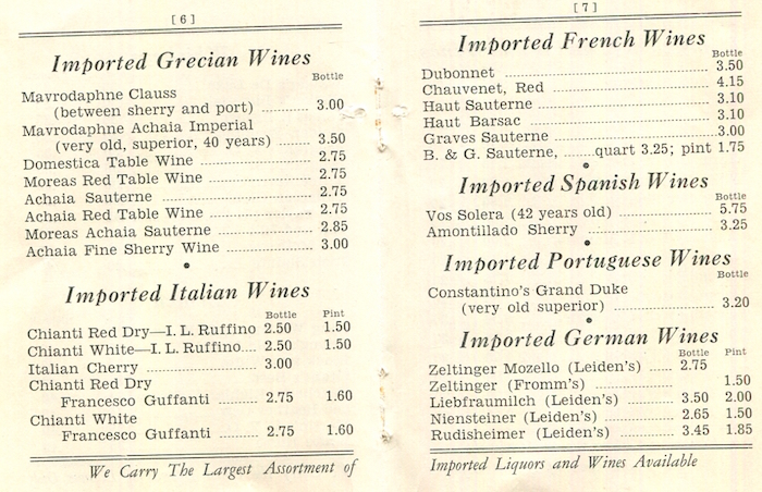 USA Michigan Detroit Wine List Sea Food Grotto 1930 Inside 2
