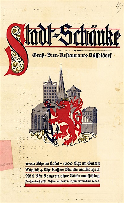 Germany Düsseldorf Restaurant Stadt Schimke Menu 1931 Front