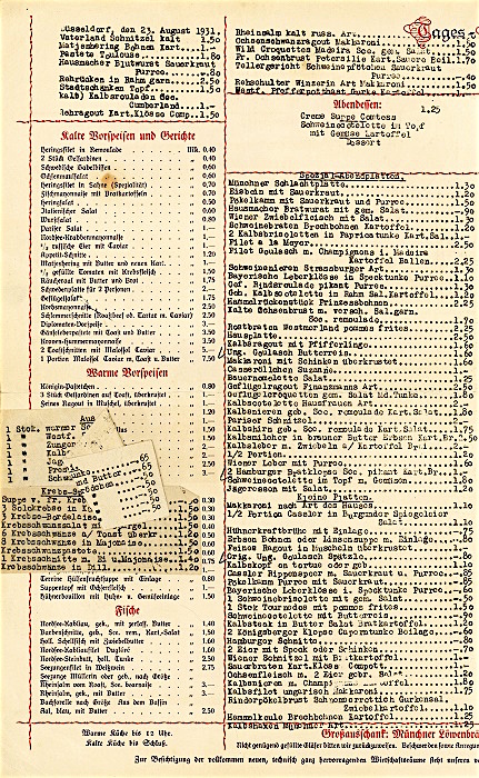 Germany Düsseldorf Restaurant Stadt Schimke Menu 1931 Inside 1