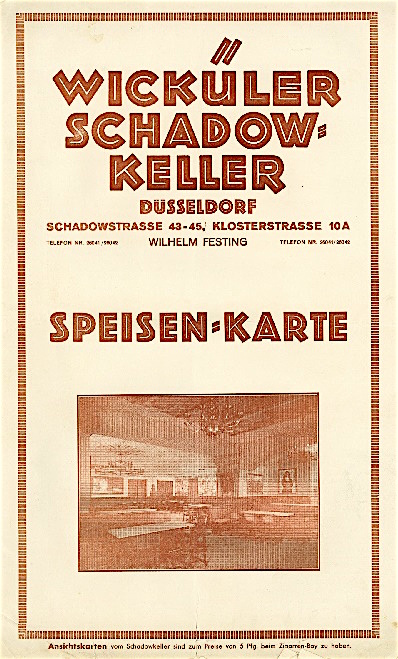 Germany Düsseldorf Restaurant Wicküler Schadow Keller Menu 1932 Front
