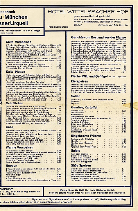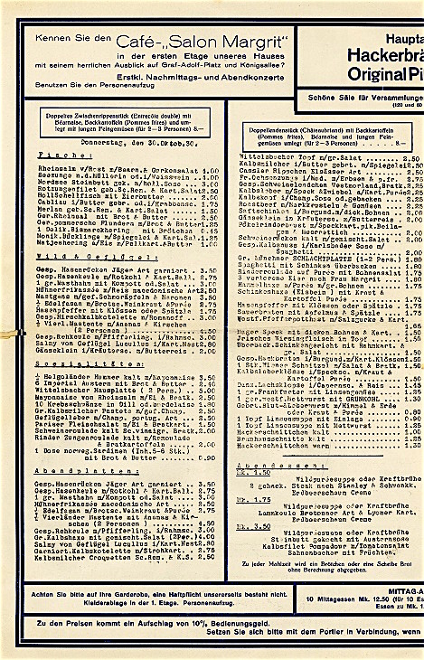 Germany Düsseldorf Restaurant Wittelsbacher Hof Menu 1930 Inside 2