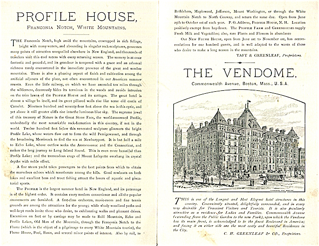 USA New Hampshire Franconia Brochure Hotel Notch Profile House 1870 Inside