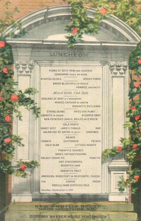 USA New Hampshire Franconia Menu Hotel Notch New Profile House White Mountains 1915