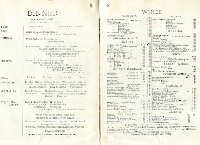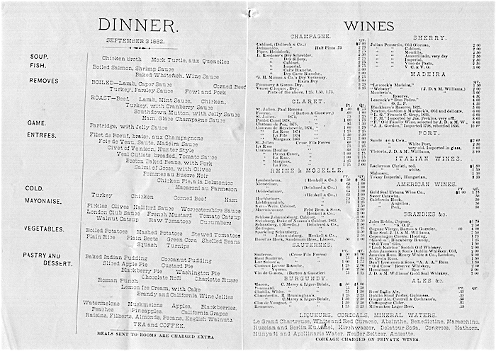 USA New Hampshire Franconia Menu Hotel Notch Profile House 1882 1 Inside