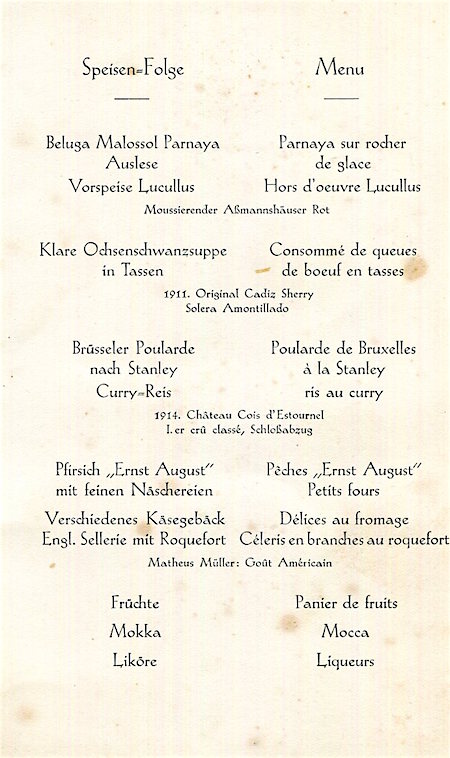 Germany Hannover Hotel Hannover Menu 1914 Inside