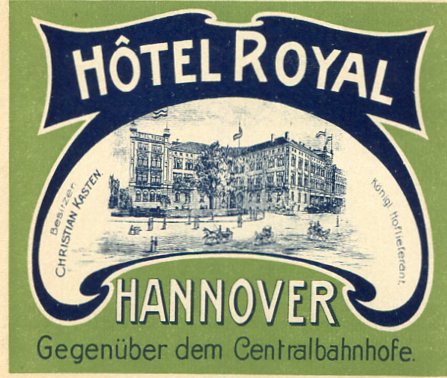 Germany Hannover Hotel Royal Luggage Label 1910