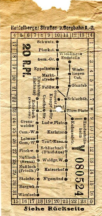 Germany Heidelberg Tramway Ticket 1929