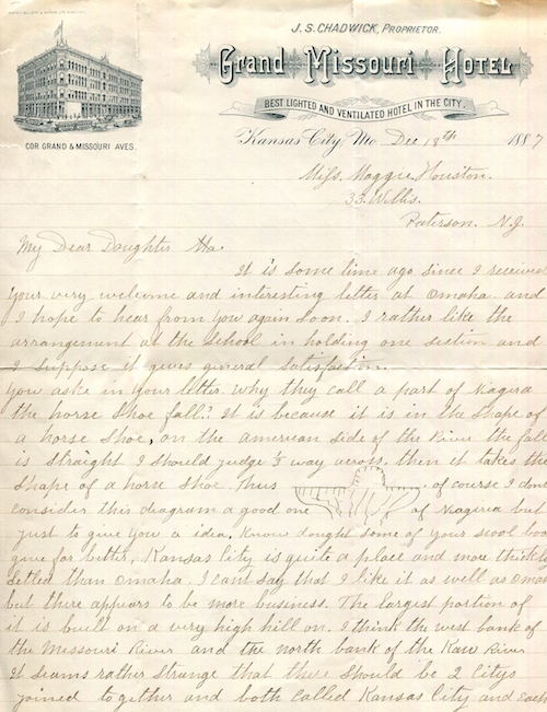 USA Missouri Kansas City Stationery Hotel Grand Missouri 1887