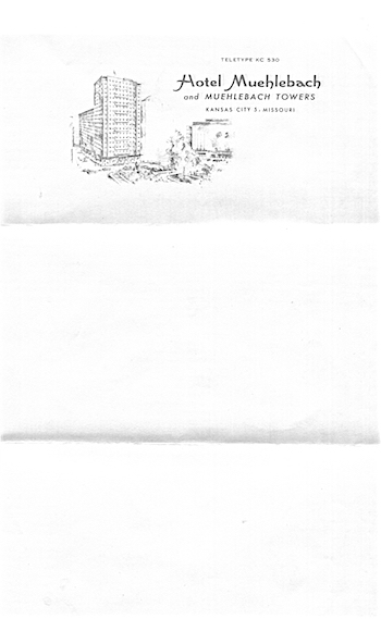 USA Missouri Kansas City Stationery Hotel Muehlebach 1930