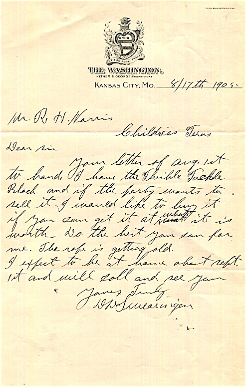 USA Missouri Kansas City Stationery The Washington 1905