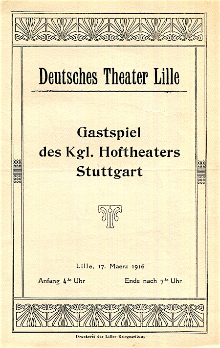 France Lille Entertainment Deutsches Theater Lille Program 1916 Front