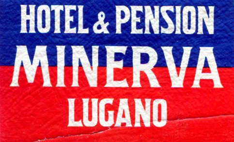 Switzerland Lugano Hotel & Pension Minerva Luggage Label 1931