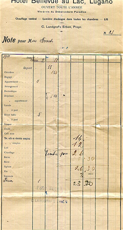 Switzerland Lugano Hotel Bellevue Receipt 1911