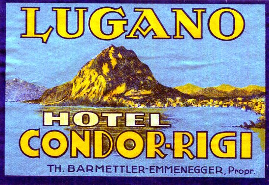 Switzerland Lugano Hotel Condor Rigi Luggage Label 1928