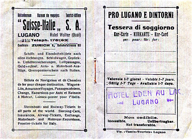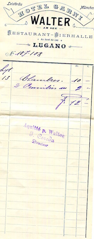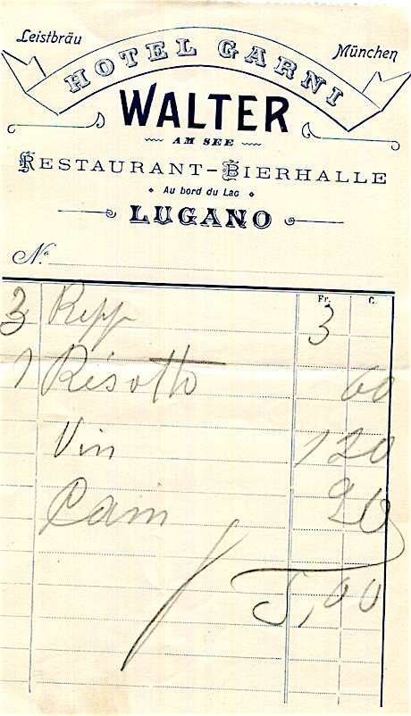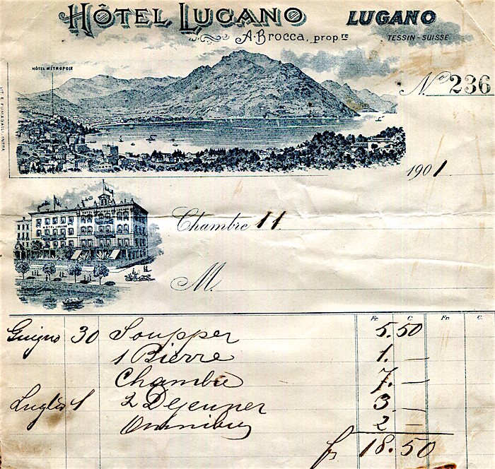 Switzerland Lugano Hotel Lugano Receipt 1901