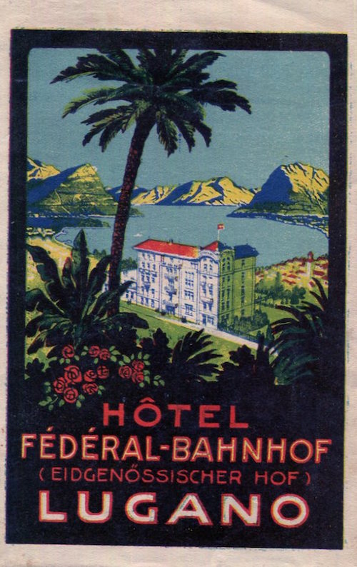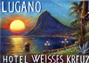 Switzerland Lugano Hotel Weisses Kreuz Luggage Label 1927