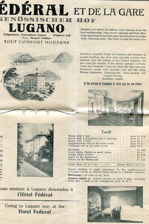 Switzerland Lugano Hotel Fédéral Bahnhof Brochure 1926 Inside