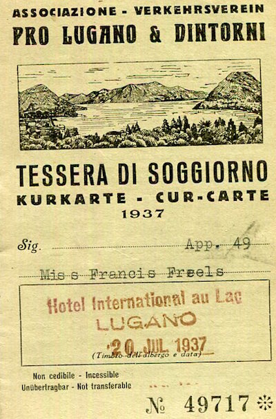 Switzerland Lugano Hotel Garni Receipt 1933-2