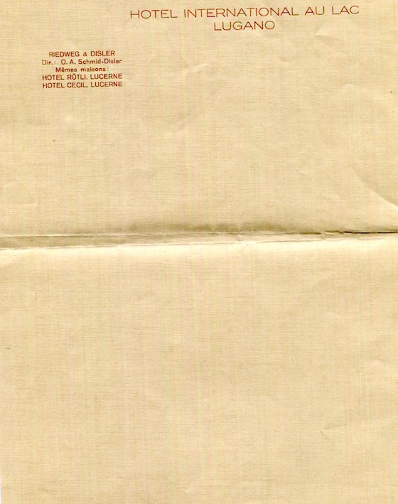 Switzerland Lugano Hotel International Au Lac Stationery 1937
