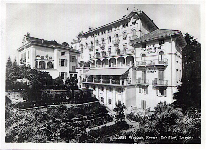 Switzerland Lugano Hotel Weisses Kreuz Schiller Postcard 1925