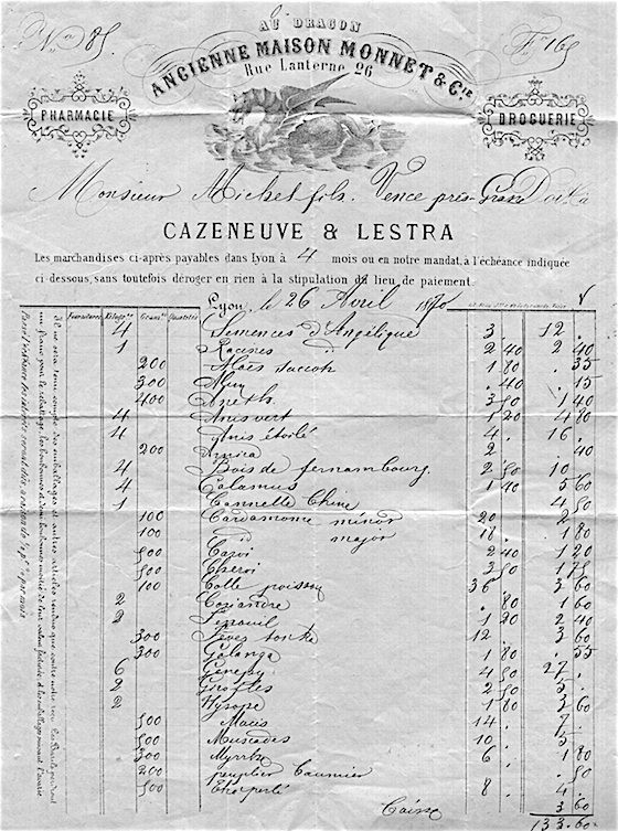 France Lyon Commerce Cazebeuve Lestra Receipt Pharmacist 1870
