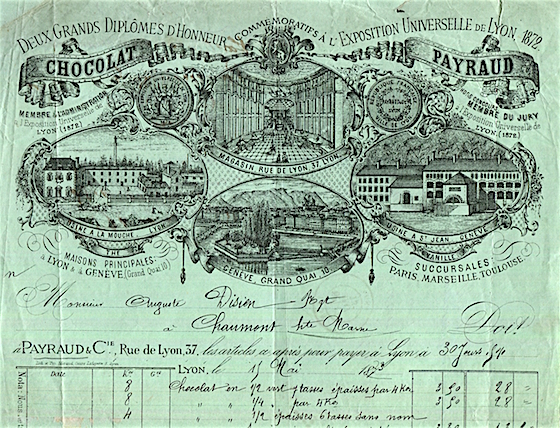 France Lyon Commerce Chocolate Payraud Receipt 1873