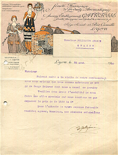 France Lyon Commerce Gattefose Letter Aromic Products 1920