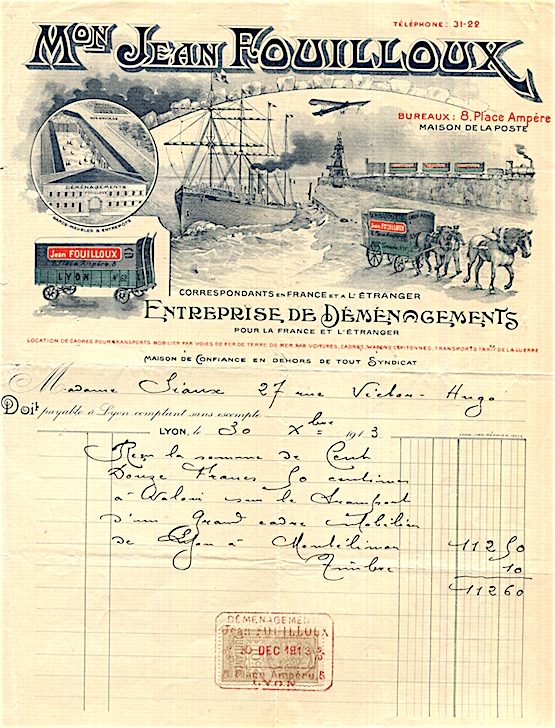 France Lyon Commerce Jean Fouilloux Receipt Removal Company 1930