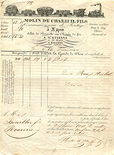 France Lyon Commerce Moulin De Chazeuil Fils Receipt Forwarding Agent 1840