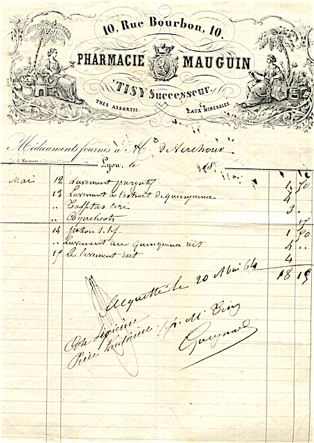 France Lyon Commerce Pharmacie Mauguin Receipt Pharmacist 1864