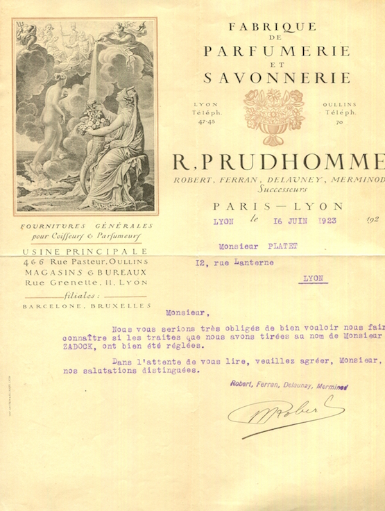 France Lyon Commerce R Prudhomme Letter Perfume Supplies 1923
