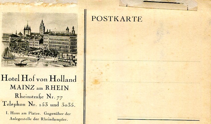 Germany Mainz Hotel Hof von Holland Postcard 1930